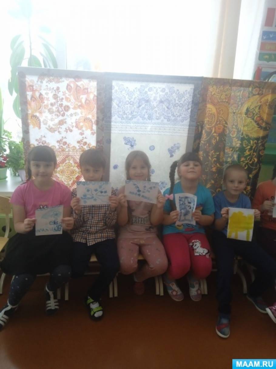 Народные промыслы -это одна из самых интересных тематических недель в детском саду. В ходе реализации темы воспитанники группы пополнили свои представления о декоративно-прикладном искусстве нашего народа, узнали много интересного о культуре России, о традициях наших предков,познакомились с творениями народных умельцев : дымковской игрушки, хохломских и городецких изделий, гжельской посуды, видами русской матрёшки, жостовских подносов,. В работе по данной теме хочется больше внимания уделить воспитанию и формированию интереса, любви к народному искусству, уважения к культуре, русским традициям и промыслам, мастерам народного творчества.